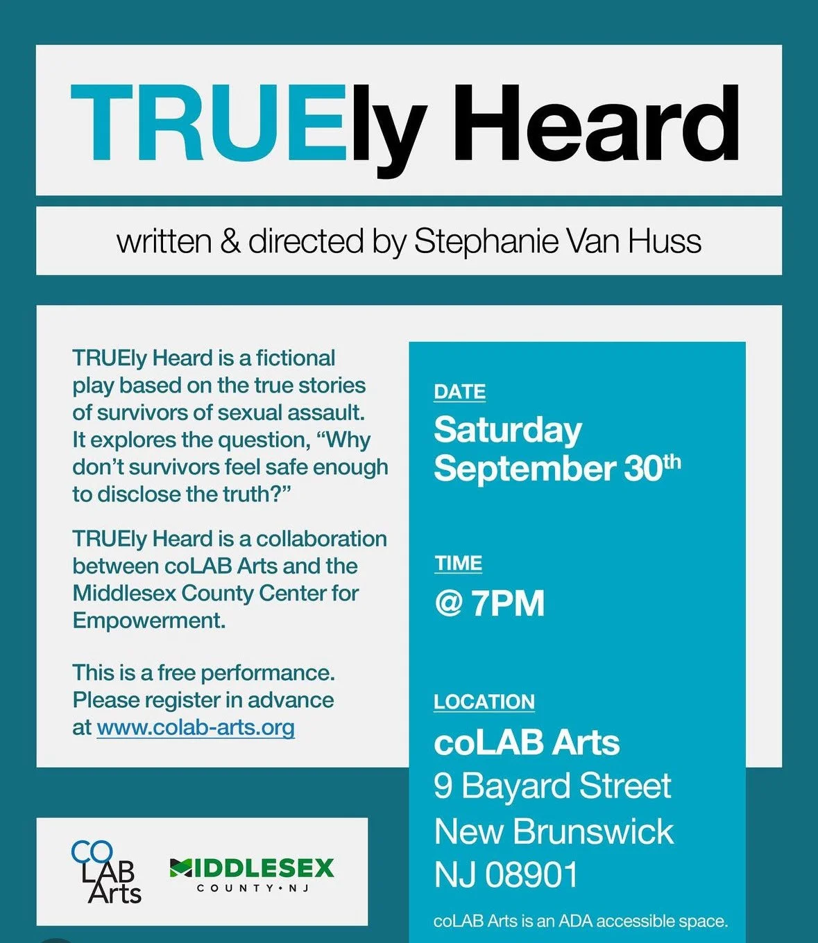 Entitled TRUEly Heard, NJCTI Lead Faculty members Stephanie Van Huss and Jasmine Carmichael developed, wrote, and directed the work throughout 2021-2024. As they worked on the project, a professional dramaturg was employed to document the creation process - including new, healthy practices we discovered in our work with survivors and performers.
